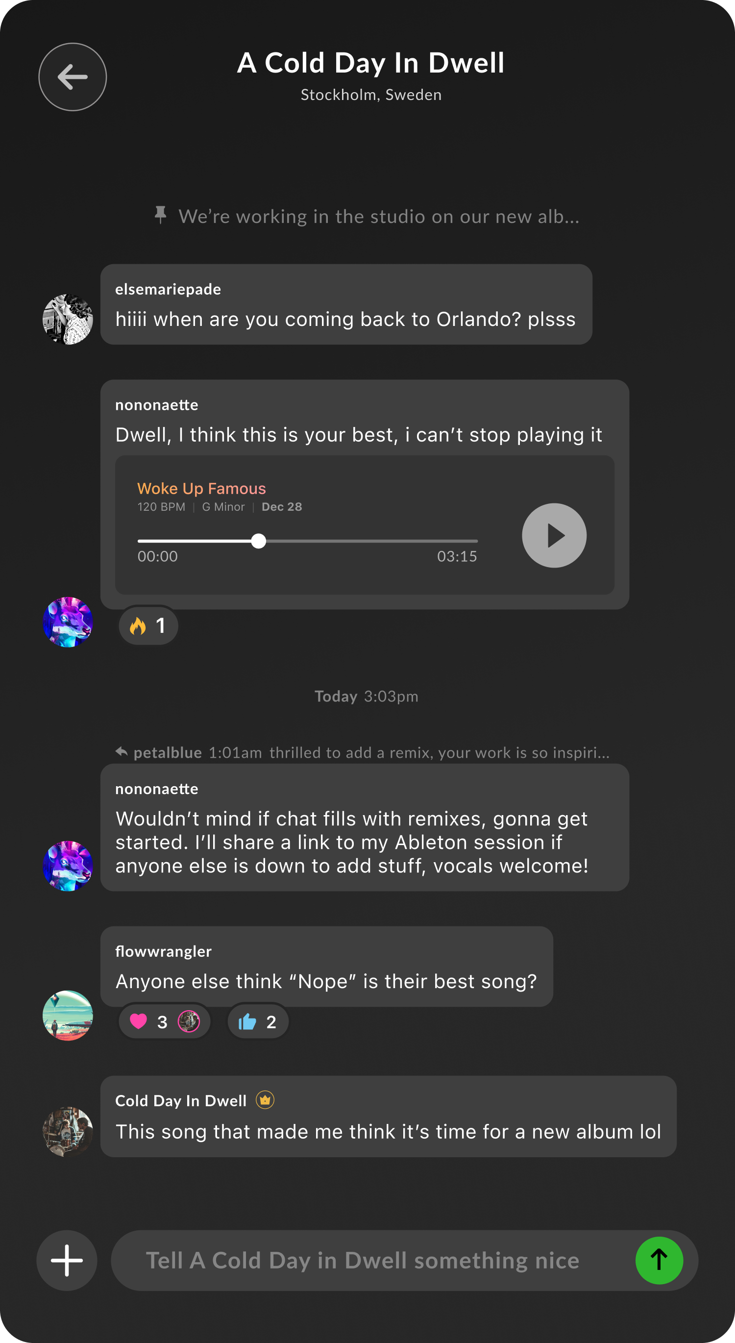 Both fans and artists can chat with each other after each unlock. It's easier to start communities next to actual musical work. Find out what people like about other songs.